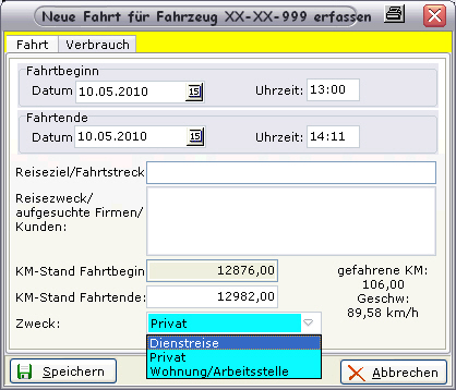 - Kilometerstand bei Fahrtende