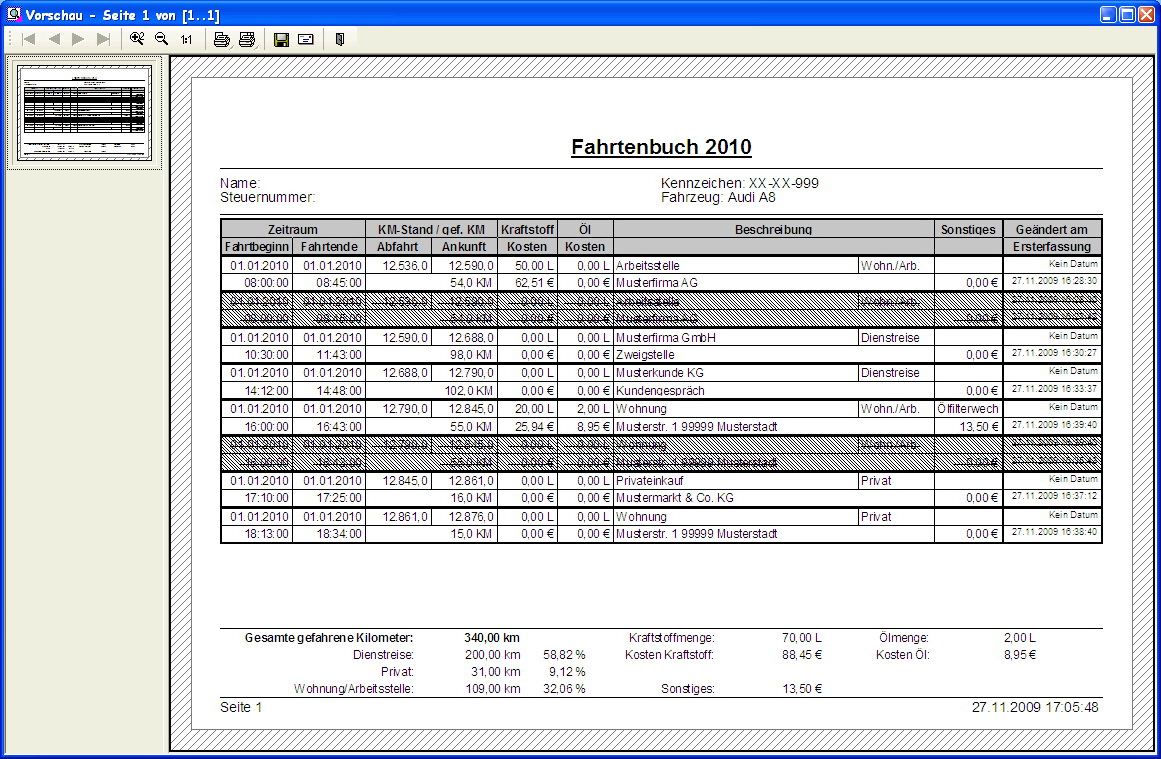 - Datum der Fahrt, Uhrzeit bei Fahrtbeginn und -Ende optional (empfehlenswert)