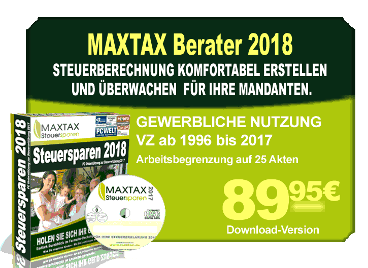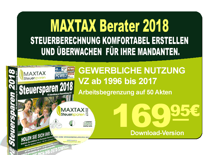 Holen Sie mit unserer Profi-Version das Optimum für Ihre Mandanten heraus. Ideal für Steuerberater oder Lohnsteuerhilfe Vereine. Lizenz zur Gewerblichen Nutzung, inkl. Update-Service